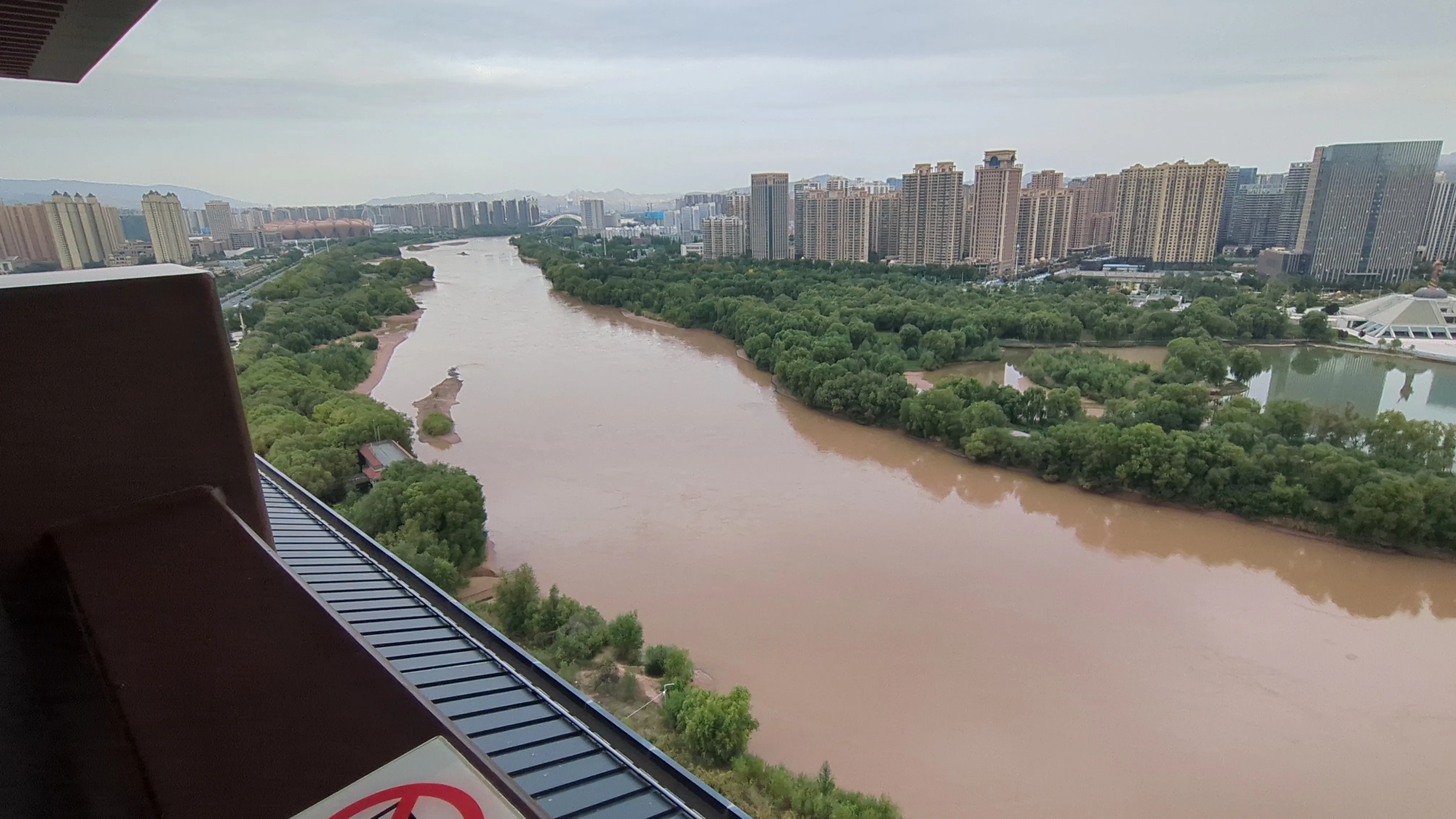 エレベータで上層階まで上がって、外に出てみると、目の前に黄河が広がりました。