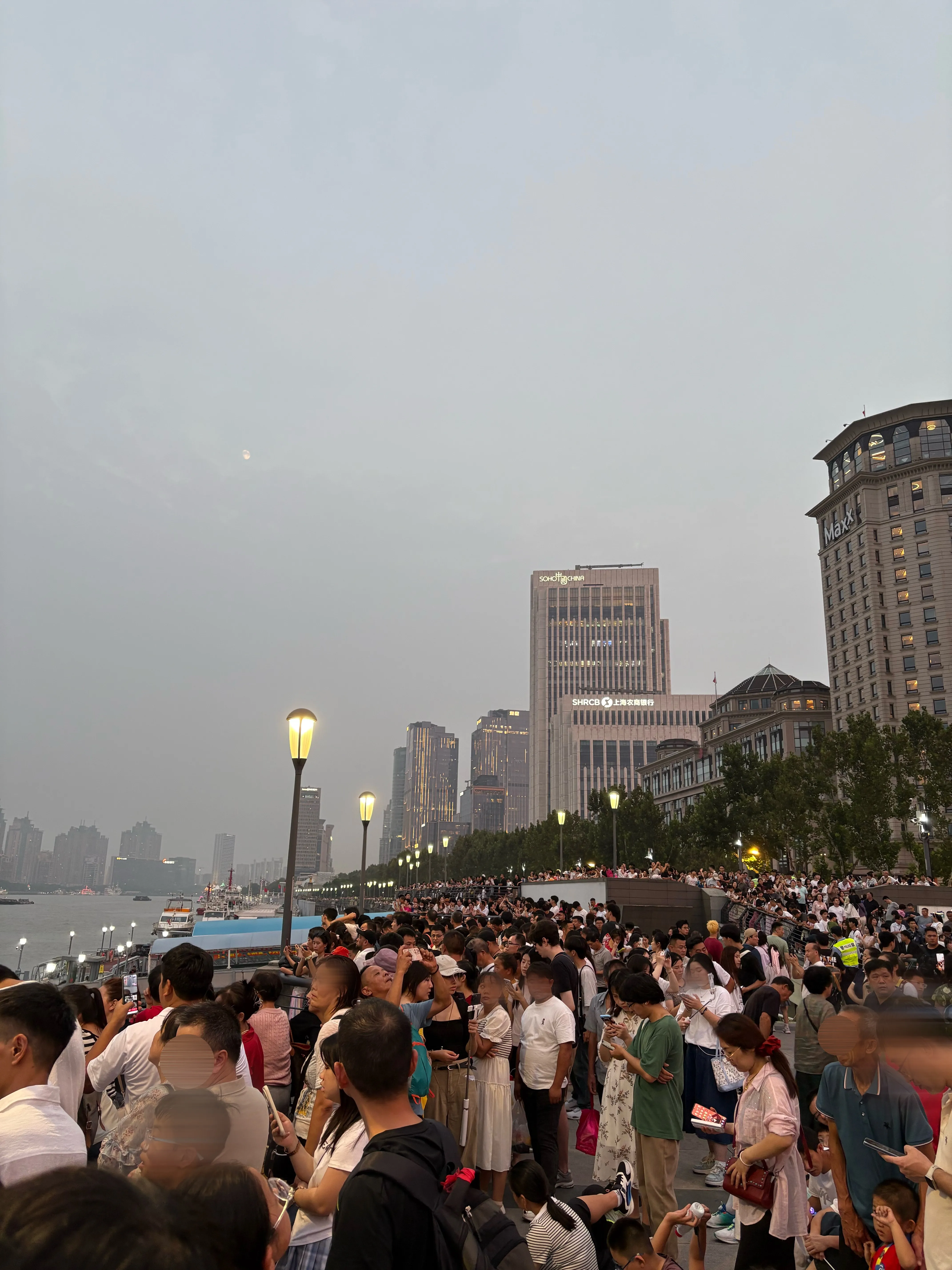 人混みに流されながら、黄浦江沿岸の歩道にたどり着くと、溢れかえる人、人、人。