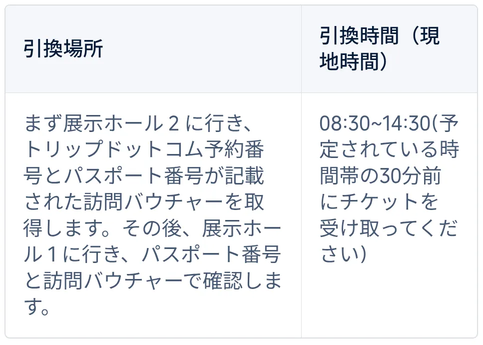 ここからTrip.comの説明の通りに展示ホール2に向かいます。