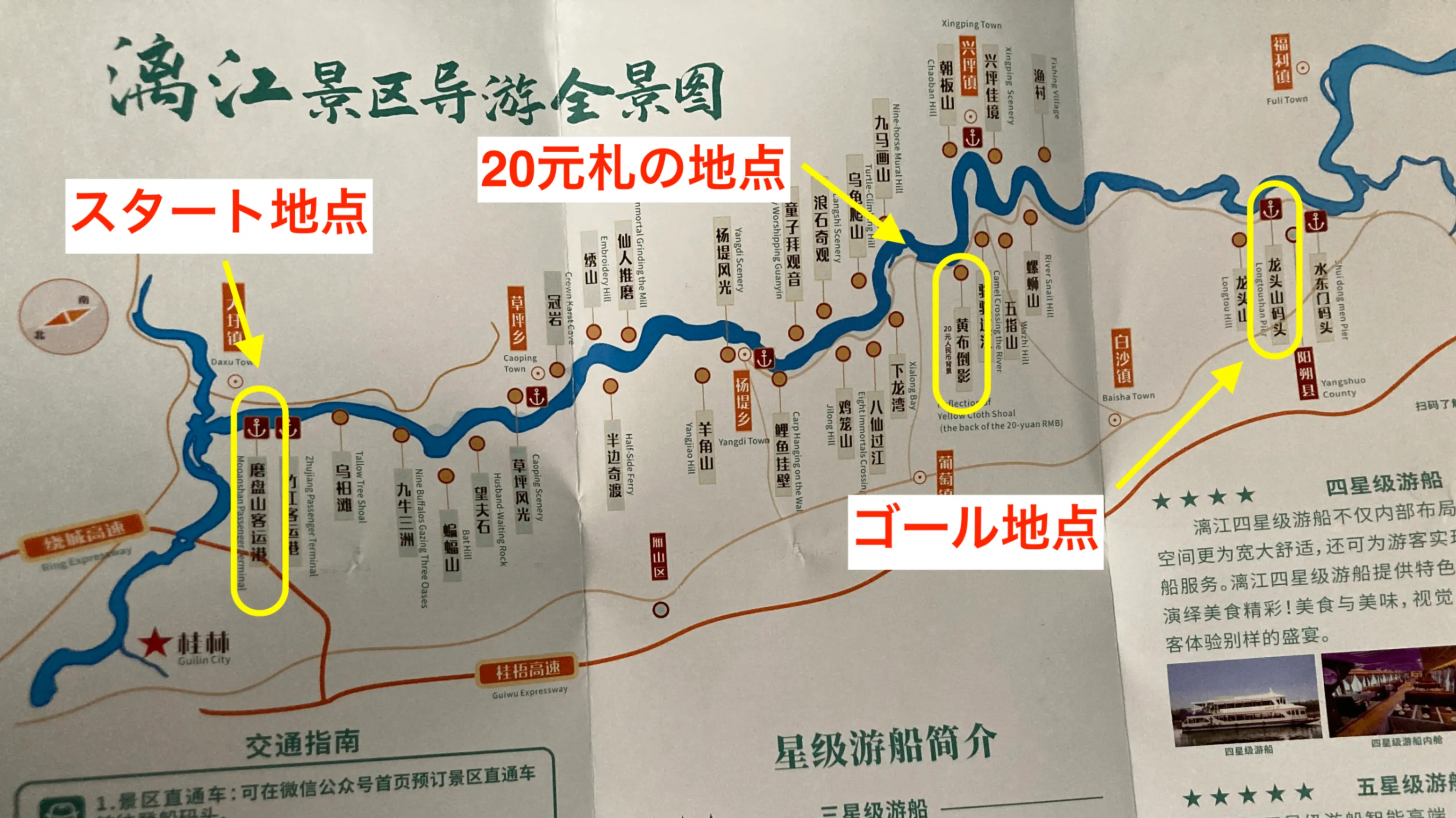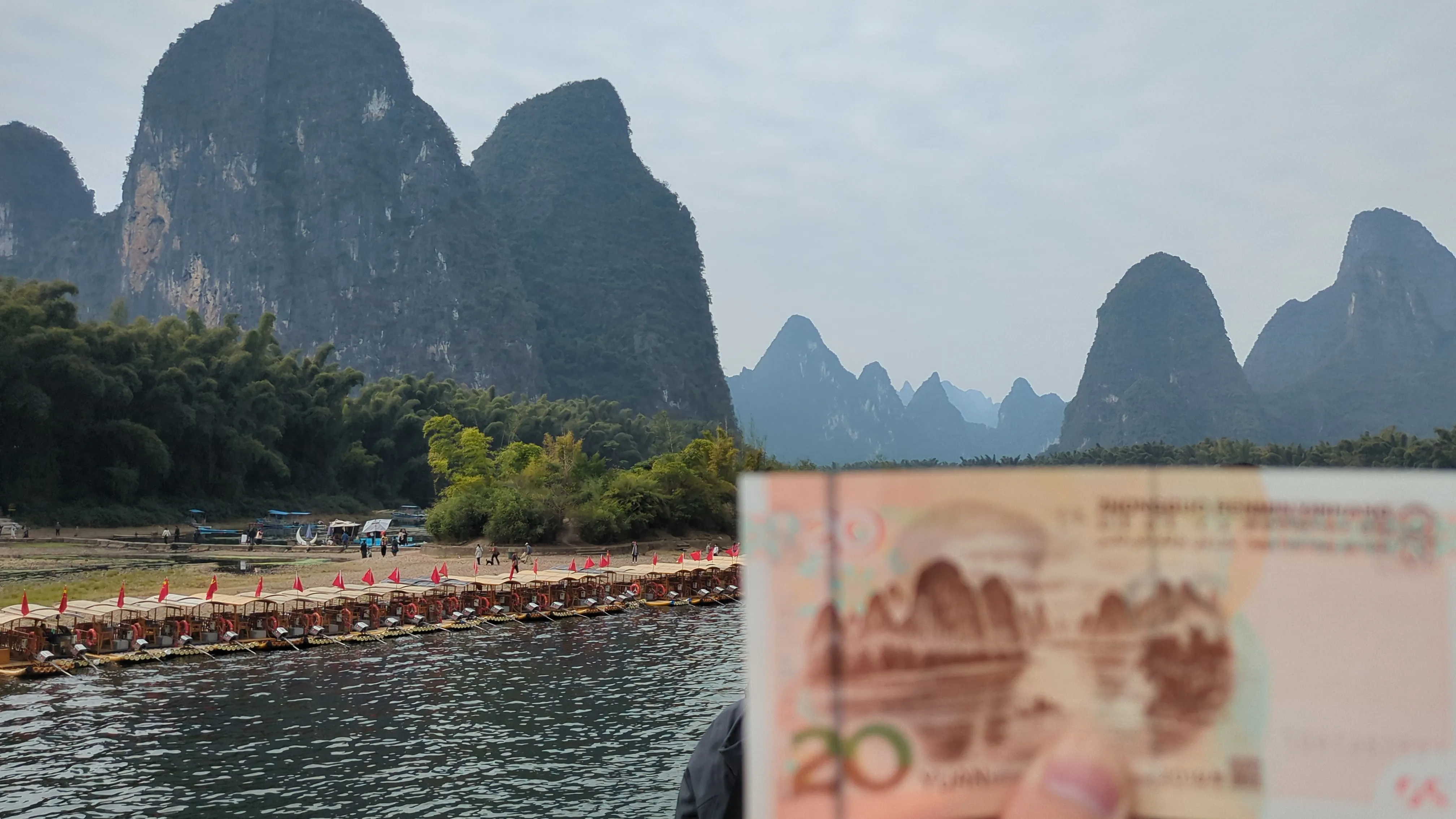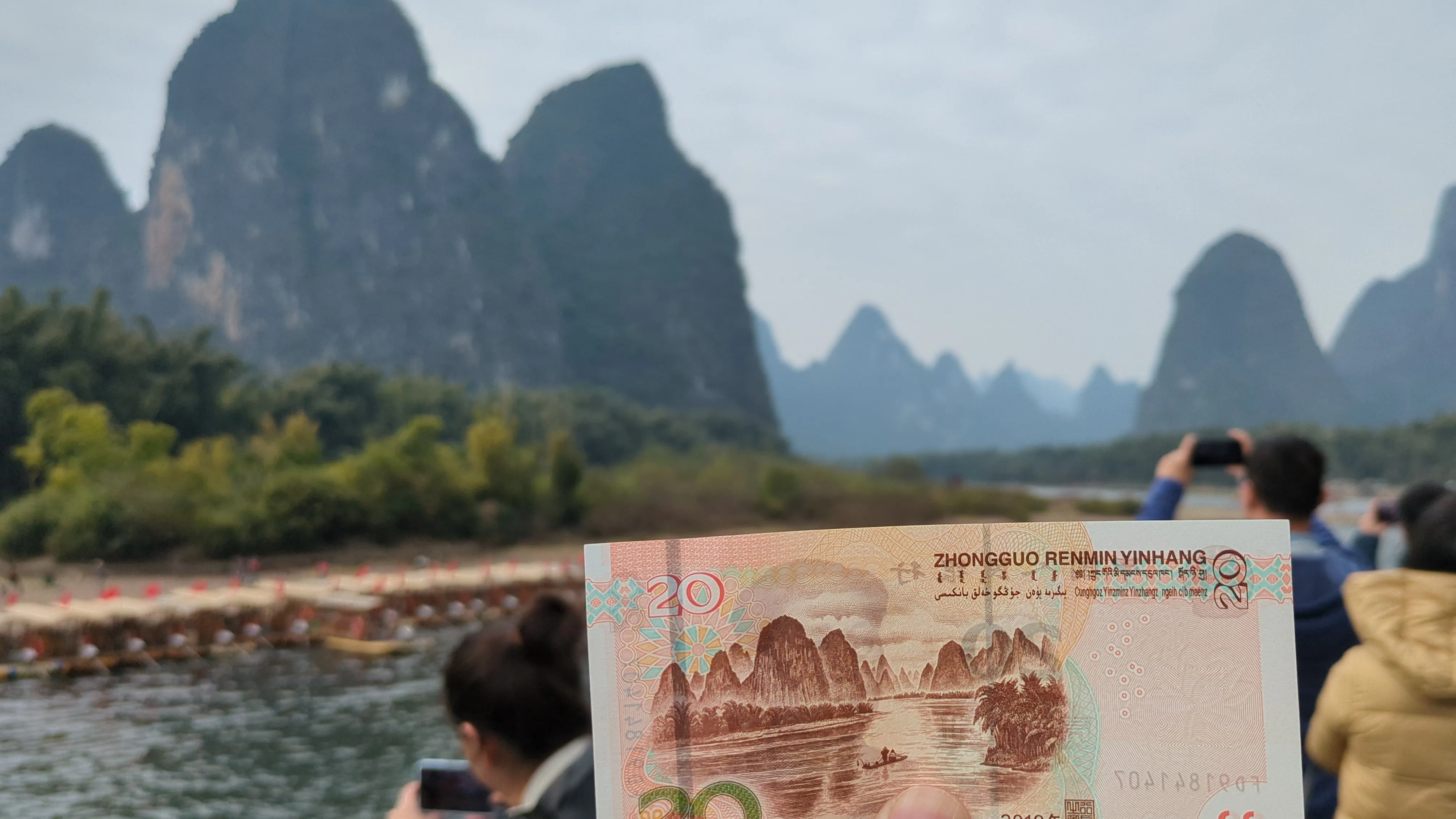 この川下りで有名な20元札の風景は黄布倒影の地点です。