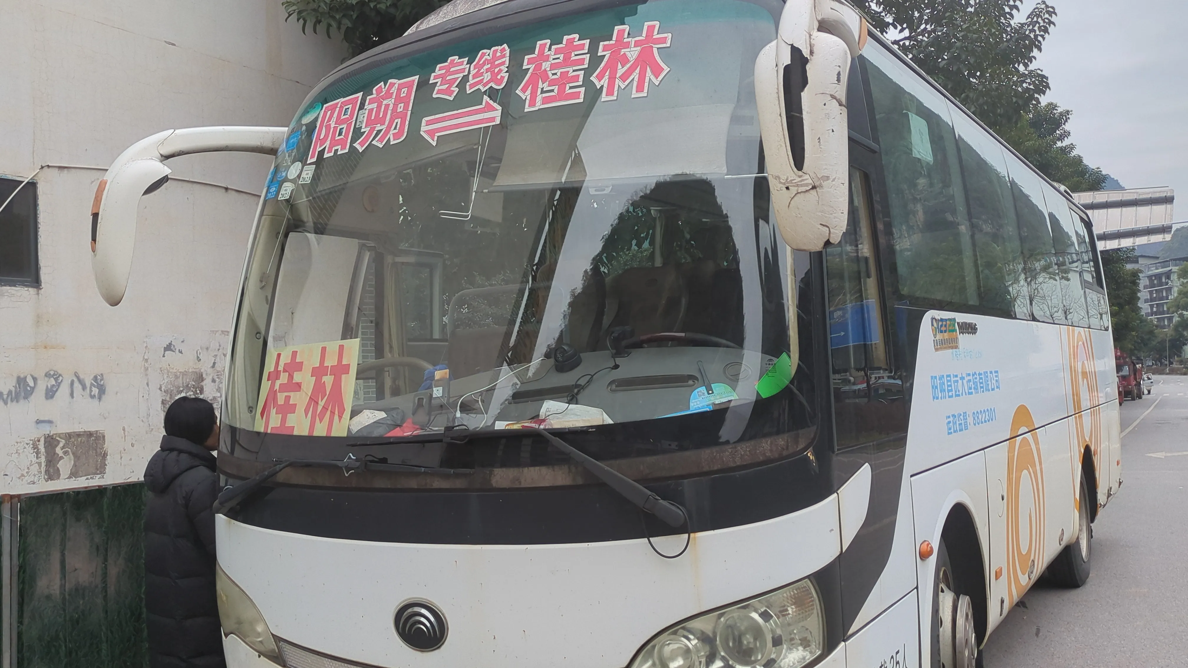 「桂林に行きたい」というと、道路の反対側を指差され、そっちを向くと桂林行きのバスが停まってました。