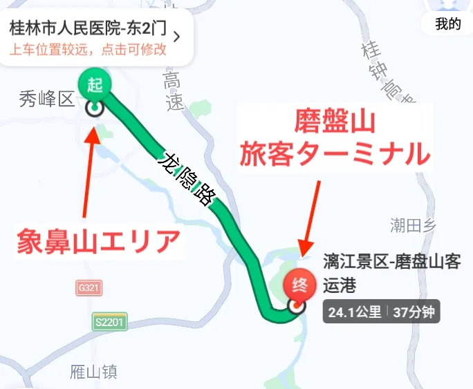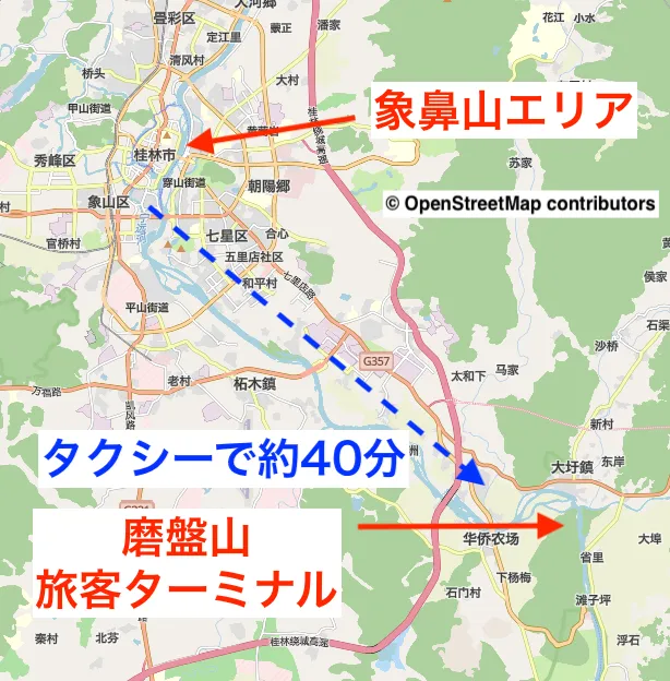 象鼻山のエリアからタクシーで約40分くらいのところでした。