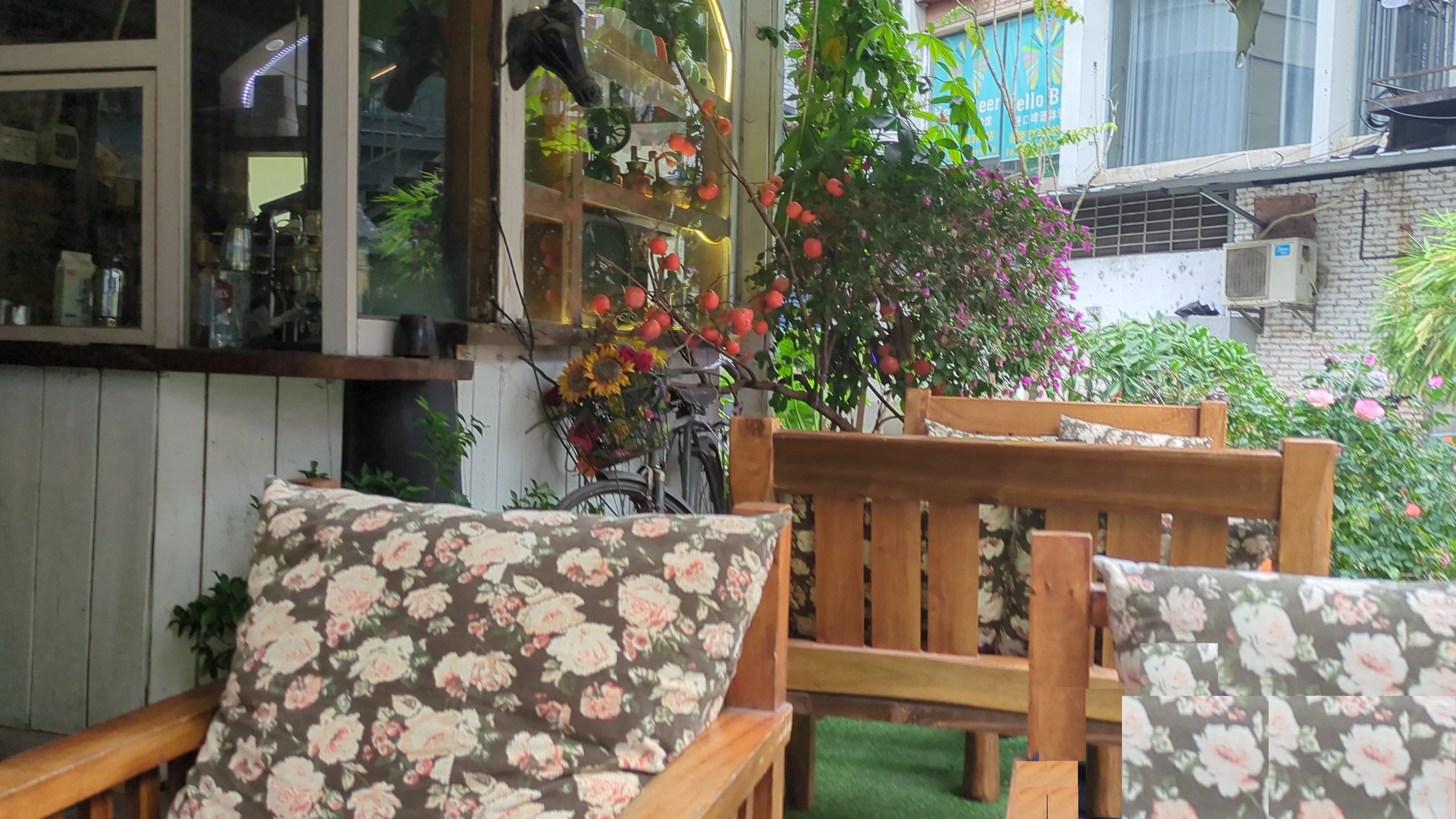 コーヒーが飲めそうなところで休憩しました。(隣では欧米の方々が食事されてました。)