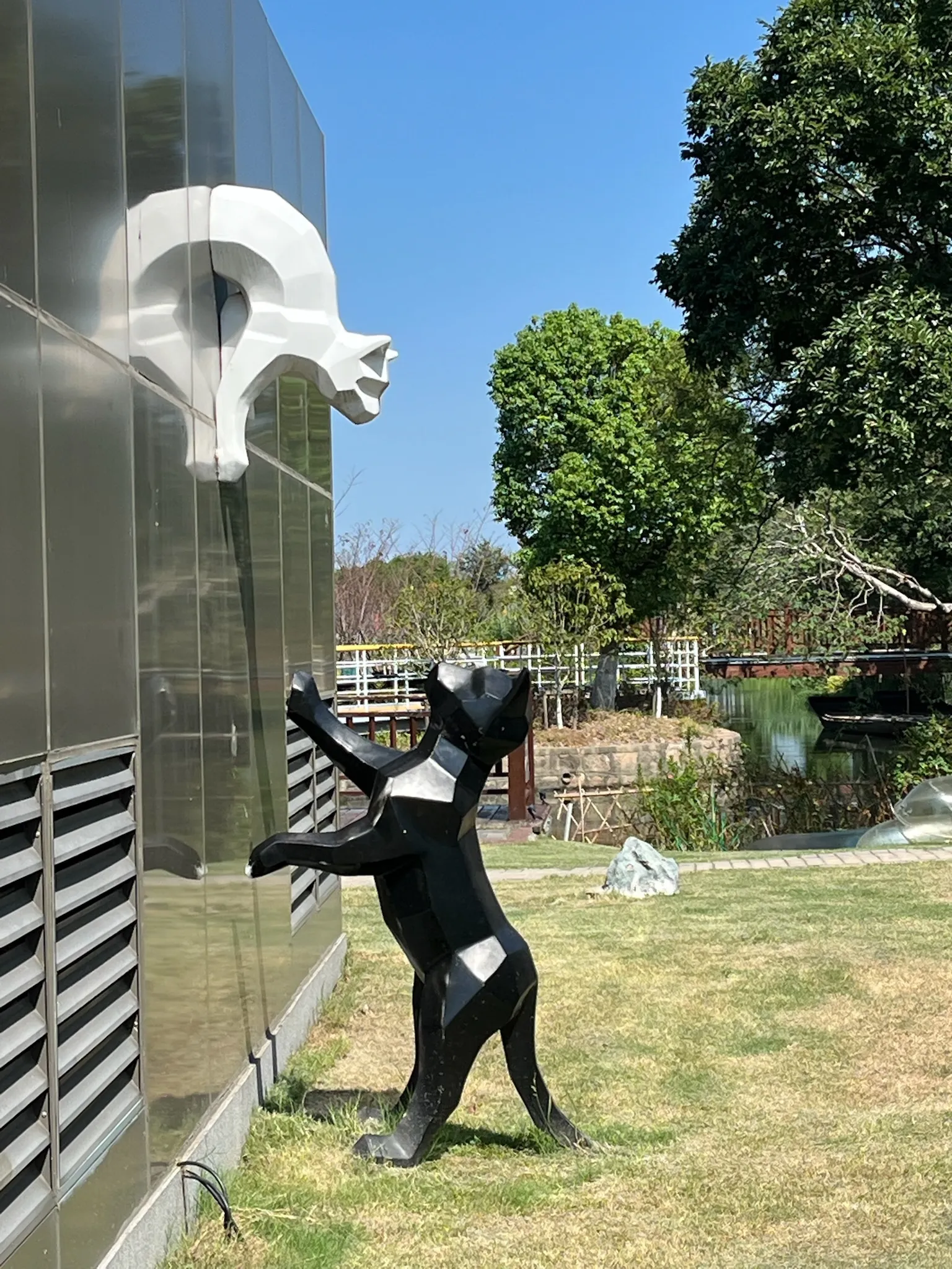 さらには、犬と猫をモチーフにした、こんなモニュメントがありました。