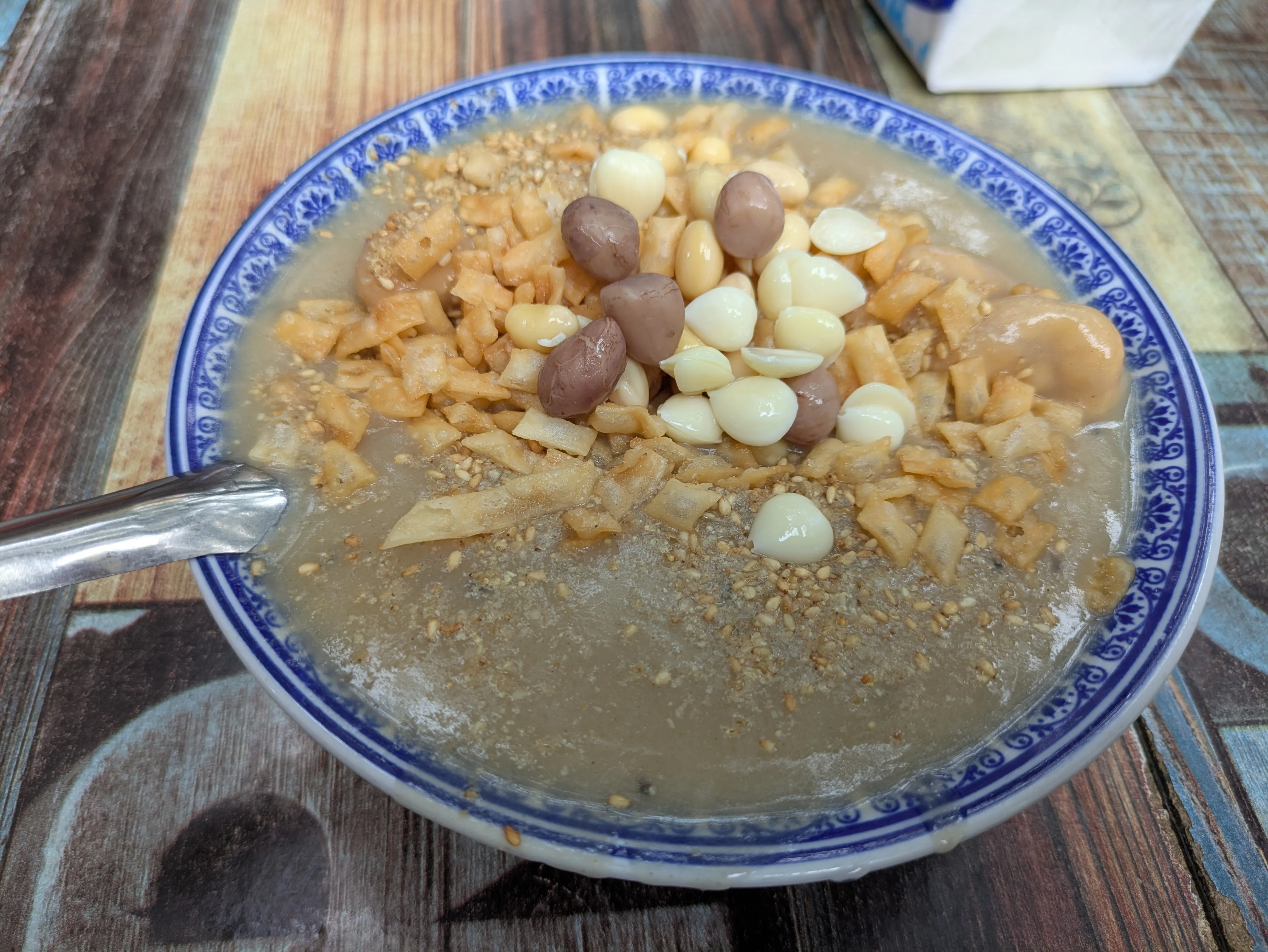 事前の調べでは「甘いものかな」と思っていたら、塩っけたっぷりのものでした。また、ごまやナッツの風味がして、香ばしい味でした。