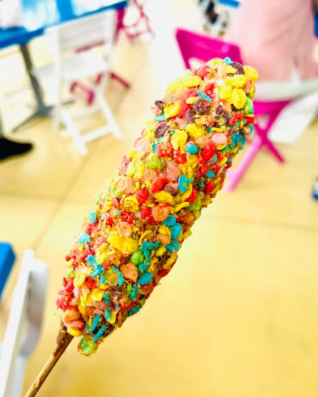 途中で小腹が空いたので、カラフルなアメリカンドッグを発見。見た目はポップで可愛く、インスタ映え間違いなし!…ただ、味はちょっと不思議(笑)。甘いような、スパイシーなような、なんとも言えない複雑さ。でも「これはこれでアリ!」と思えるのがレゴランドの魅力かもしれません。