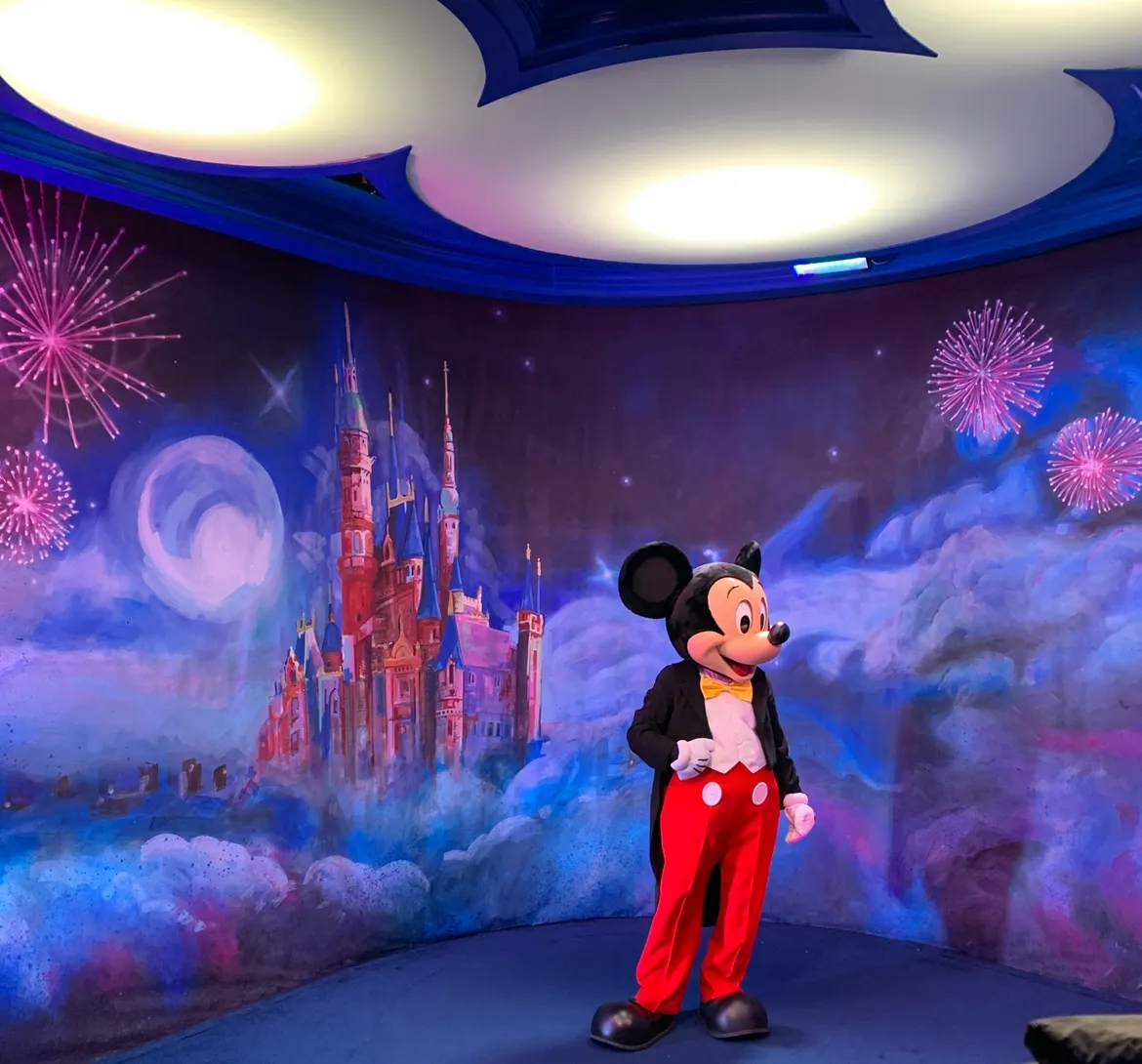 日本だと長時間並んでも触れ合えるのはほんの数十秒ですが、上海ではゆっくりお話しでき、写真もたくさん撮れます。ミッキーファンにとってはまさに天国のような時間でした。