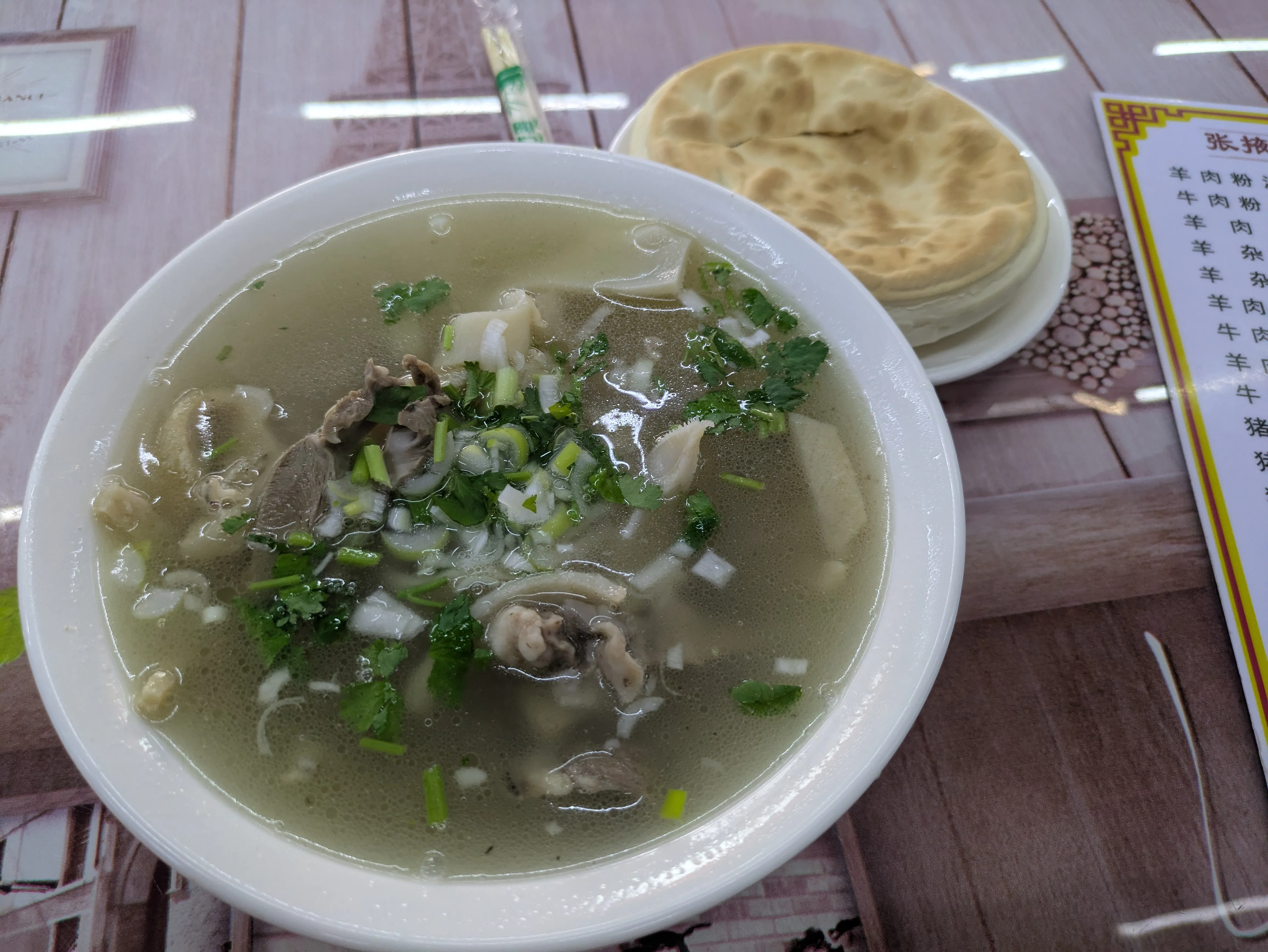 高速鉄道の出発まで少し時間があったので、駅周辺にあった食事処で羊杂汤を食べました。